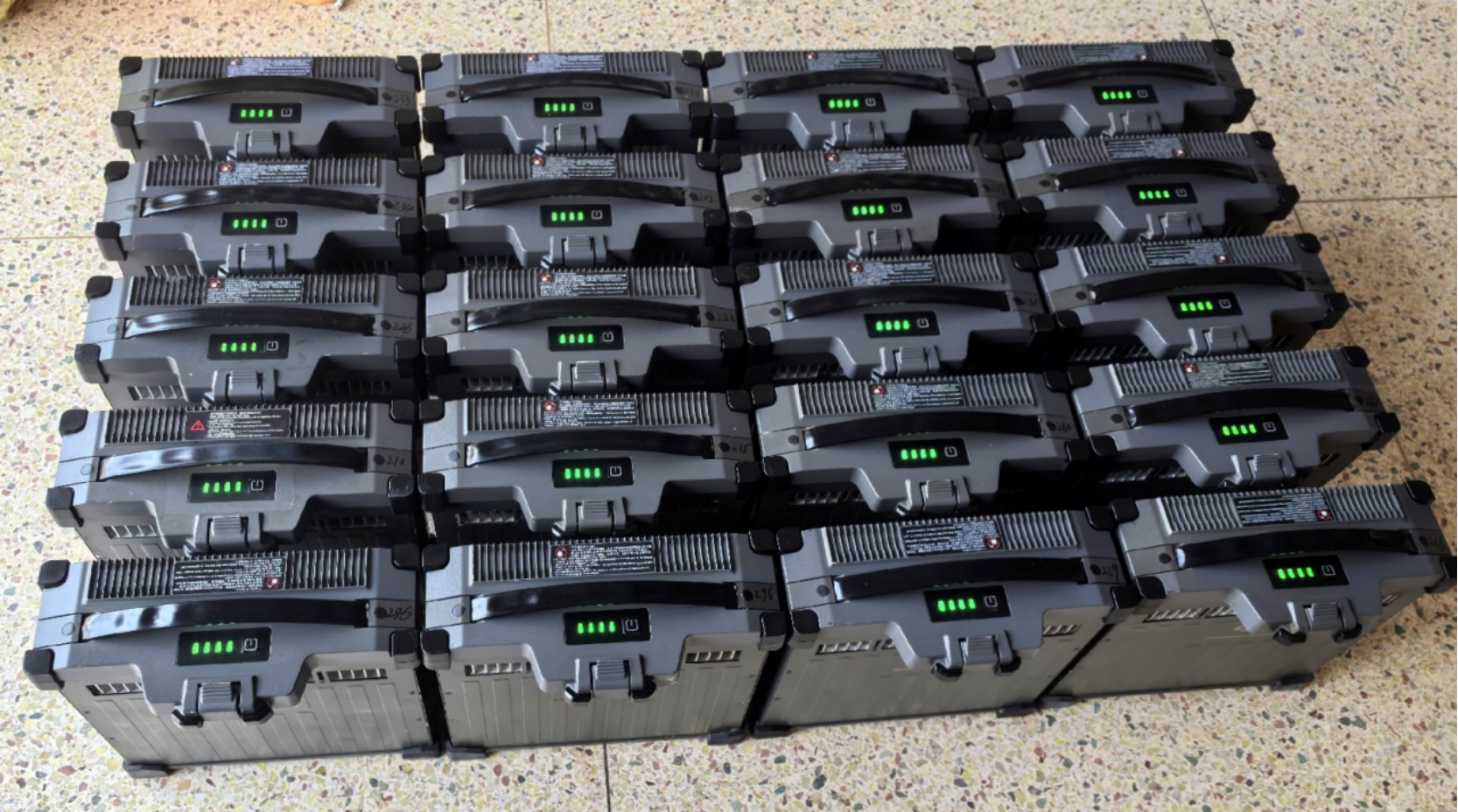 Bulk supply of pre-owned DJI batteries, available with various cycle counts.
